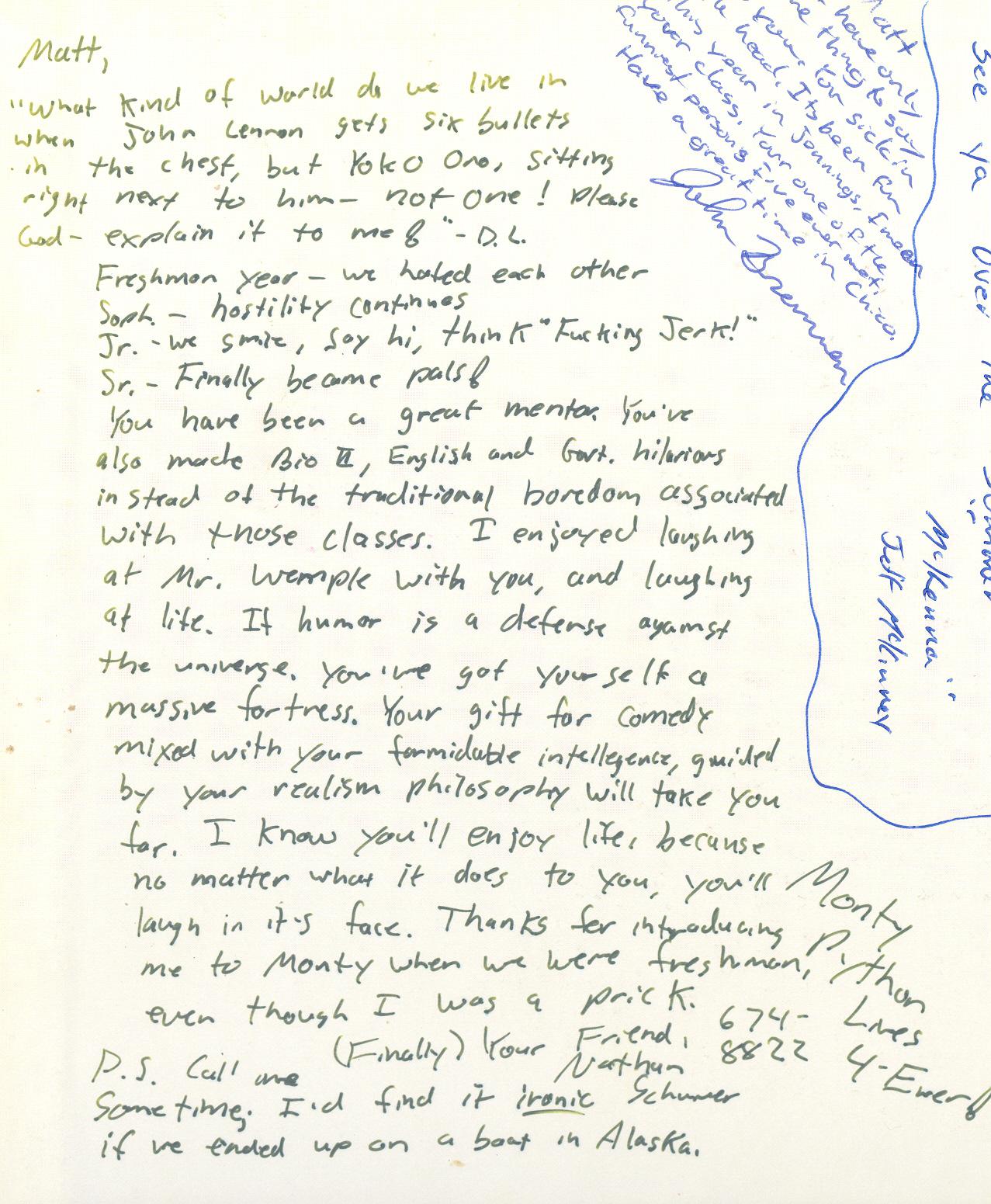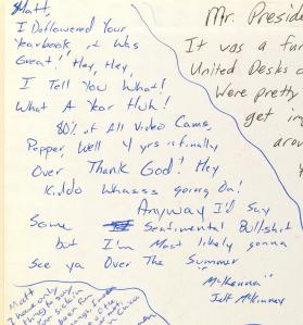 Two all-around good guys who deserved a longer run, one gone in 2006 and the other just today. Both made their marks on my life…and on the inside cover of my yearbook, moments apart, on an overcast June day in 1993. Rest in peace.