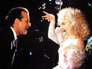 Many Carol adaptations forget that the visits from the Christmas Ghosts are supposed to be creepy and traumatic, otherwise they wouldn’t convince Scrooge/Cross to change his ways. The Ghosts put Cross through a physical and emotional wringer, leading up to the final transformation, which by the way, is a manic, improvised rant filmed in what appears to be a single take. Murray genuinely looks like someone who has reached the end of his rope, and experienced a re-birth. He concludes with a shaky, out-of-breath declaration that he feels “really better” than he’s felt “in a long time.” Sometimes simple words say it best.