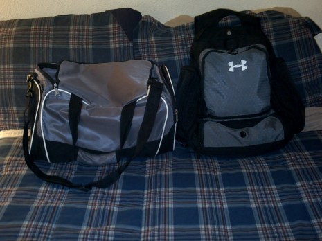Again, you made me laugh out loud. Favorite parts:Your writing is so good if you WERE into that kind of stuff you would tell such ridiculously good stories for the games, or you'd write really good games.Our loss.Sincerely,The Gamers of the World2nd Favorite partYour writing, while tight and fabulous, has a rambling air to it. I found this hilariously juxtopositional to your incredibly straight laced line up of your belongings, and their consequent containment in two neat bags. Made me laugh just because it surprised me so much. 🙂