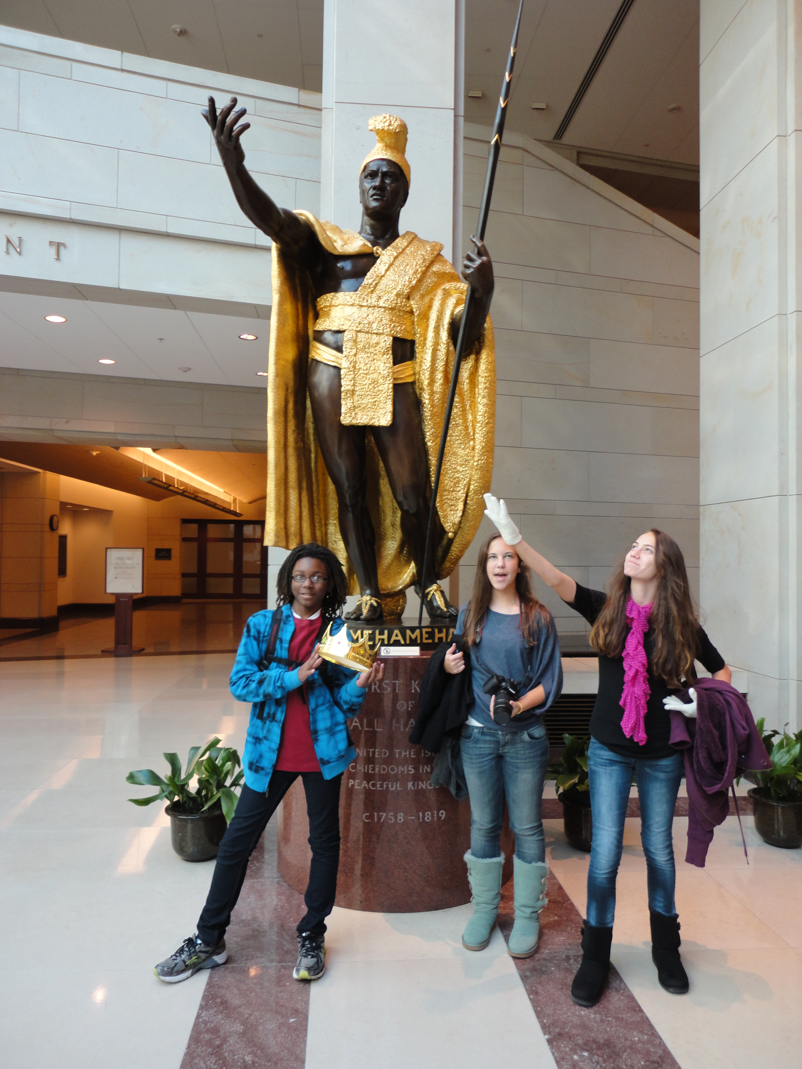 The Visitor’s Center in the lower levels of the Capitol is basically a repository for statues. Every state is allowed to contribute two statues to the Capitol’s collection. Some are on display in the main Rotunda, some in the former House of Representatives chamber now known as “Statuary Hall” …and some were dumped in the Visitor’s Center’s “Emancipation Hall,” including such luminaries as Idaho’s William Edgar Borah and Delaware’s John Middleton Clayton. (Hawaii’s King Kamehameha statue — pictured at left — was a little more interesting.) After about of a half-hour of milling around and lining up, we finally met up with our tour guide, Lily, who was probably around to see the Capitol being built. Lily spoke into a