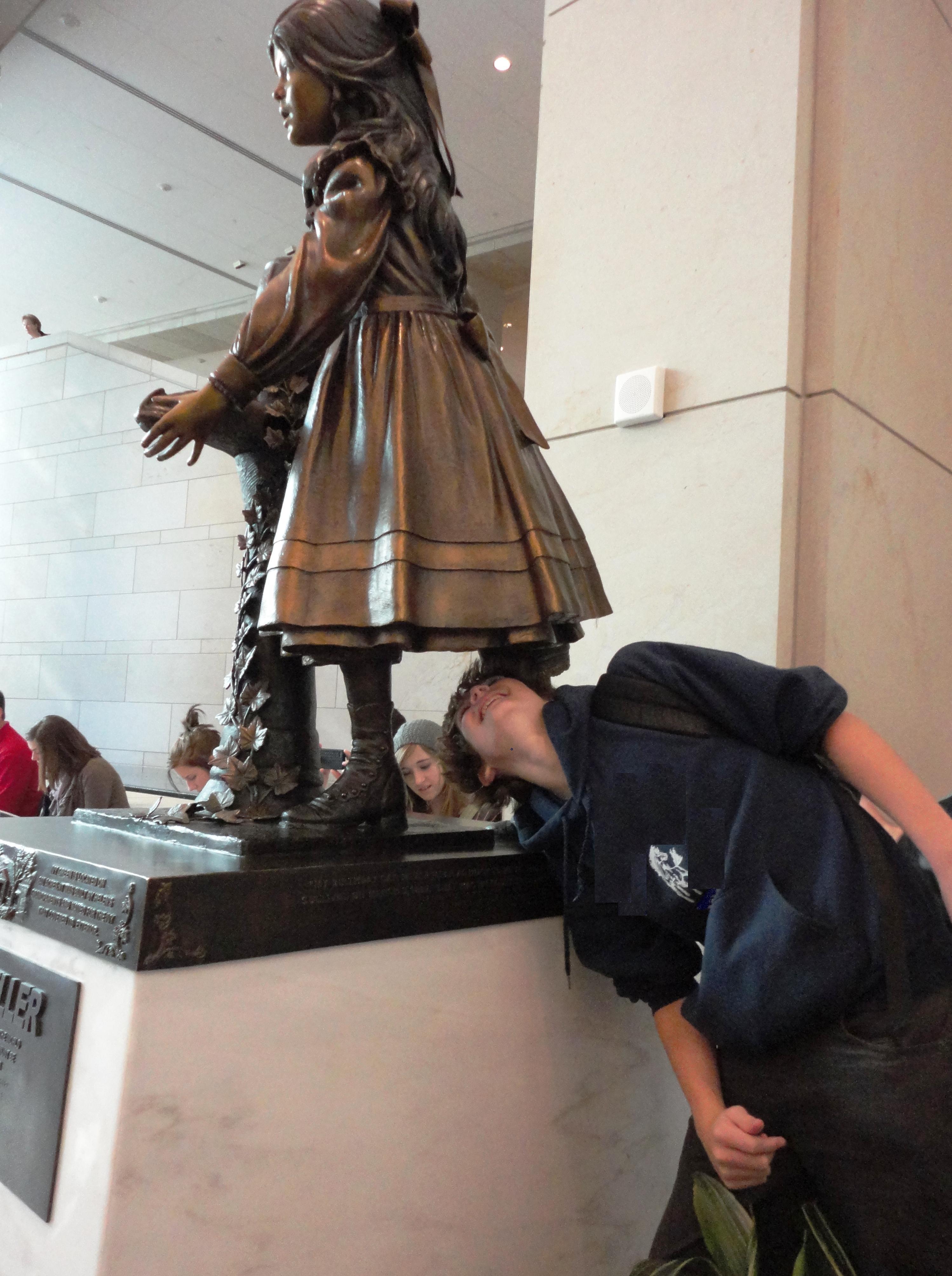 Tucker investigating Helen Keller’s bronze undies, Capitol Visitor’s Center. In his defense, the wait to get in was getting pretty long (and it’s not like she’d notice, even in real life.)