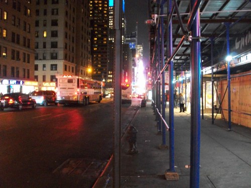 This was my view down Seventh Avenue, avoiding the tab calculation and waiting for our lost lambs to appear. Times Square glows in the distance.