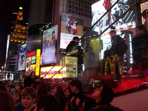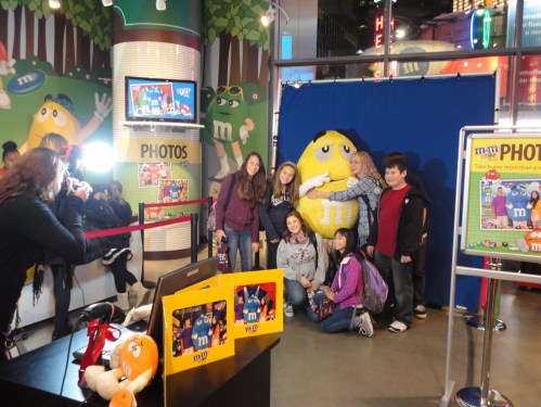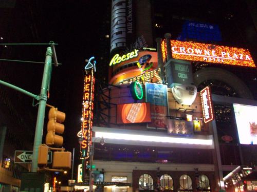 We spent a good twenty minutes gawking at the billboards ourselves before the shopping bug hit. The retail venues that everyone decided to throw their hard-earned (not really) spending cash on were the massive, competing candy stores that faced each other at 48th and Broadway. If the multi-story Hershey chocolate store couldn’t sate your sweet-tooth, then its neighbor, the M&M store could. Every square inch of floor space in these stores was occupied by teeming humanity, so I decided my presence was not needed. Elizabeth, still getting her sea-legs, agreed. We lounged near the entrance.