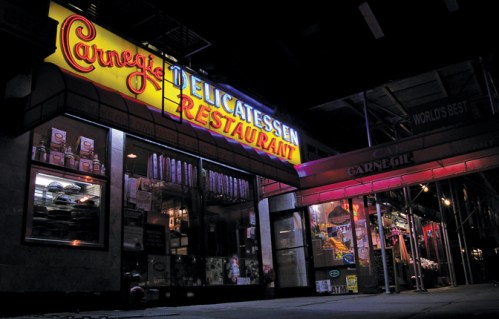 Carnegie Deli, 6:12 p.m. The Carengie Deli, located at 854 Seventh Avenue, opened in 1937, and has been operated by three generations of the same family. Famous for its one-pound pastrami or corned beef sandwiches and cheesecake slices the size of a tombstone, the deli boasts the motto: “If you can finish your meal, we’ve done something wrong.” It quickly became a popular hang-out for celebrities, especially comedians. The walls are lined with autographed photos of its famous and somewhat-famous customers.