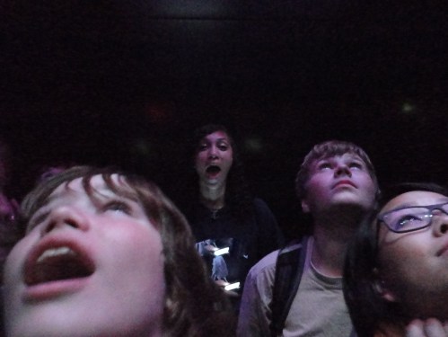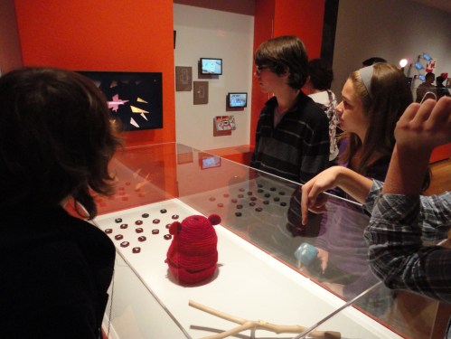 The students freely ranged from display to display, in clusters of two and three, diligently scribbling into their little blue notebooks (provided by us at the start of the trip.) Some scribbled more diligently than others. I know I found at least two of those blue notebooks, uncracked, left behind in various lobbies.