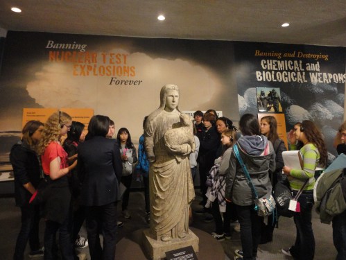 Slightly better was the part of the tour dealing with the U.N.’s humanitarian efforts through the decades (this may have actually inspired more projects in the end than the museum displays.) Cade got to try on one of the famous light-blue U.N. “Peacekeeping” helmets.