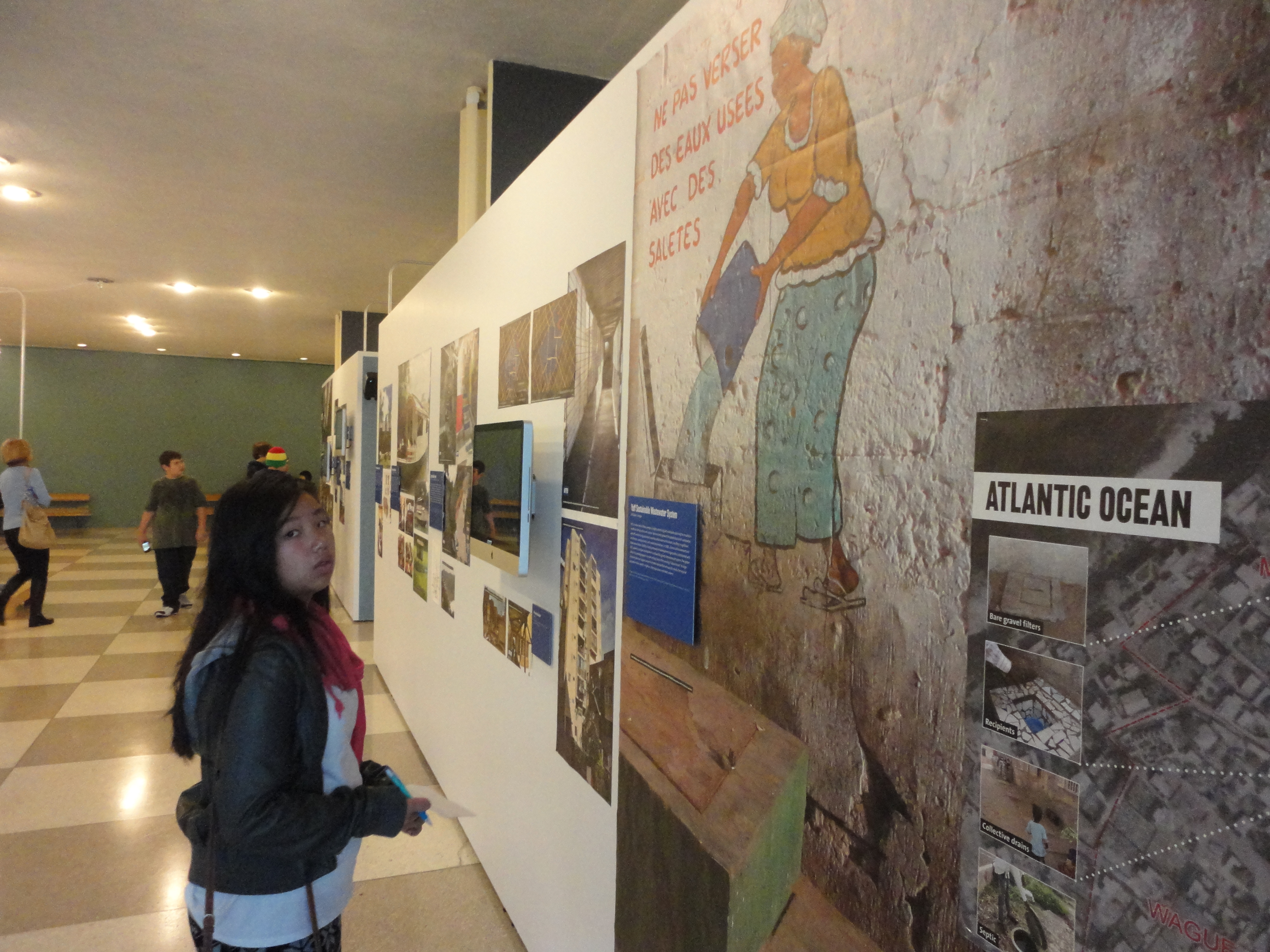 Soon — too soon — a pretty high percentage of our designers-in-training were curled up asleep on the comfy benches that lined the display area. I thought they were zonked at the Library of Congress, that was nothing compared to the somnabulism on display at the U.N. MDG and I awoke them, and through clenched teeth explained to them that this was the whole reason for the trip and that they had goddamn jolly well better wake the fuck up. (This is not a direct quote.)
