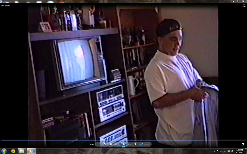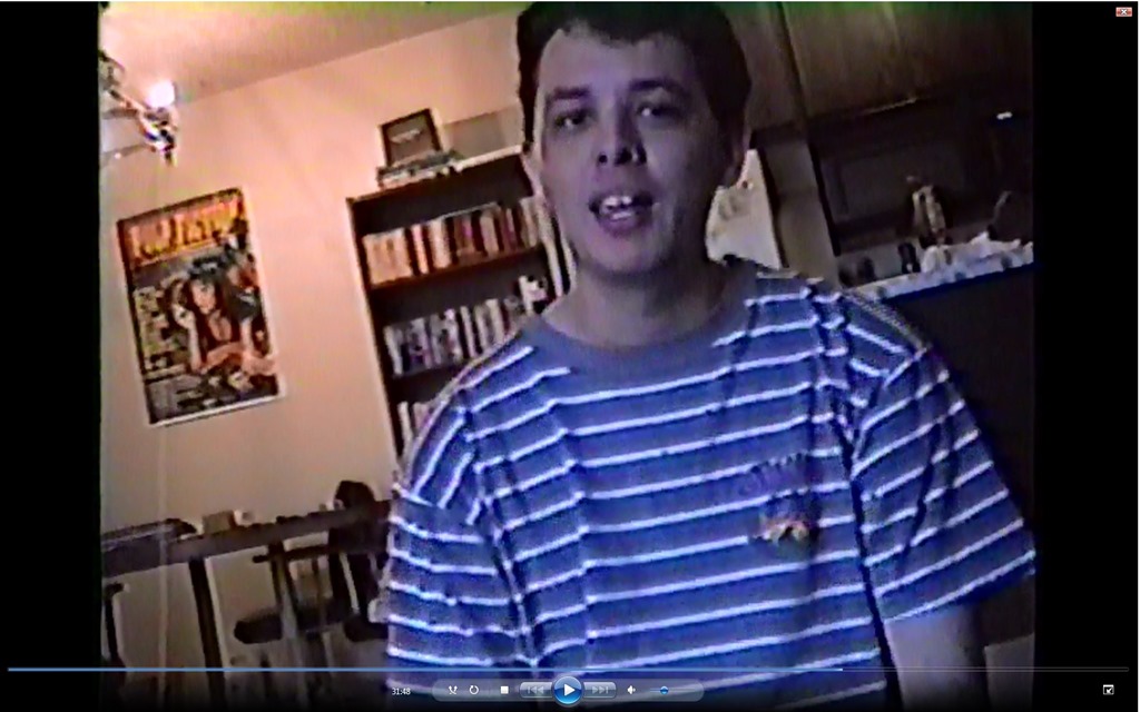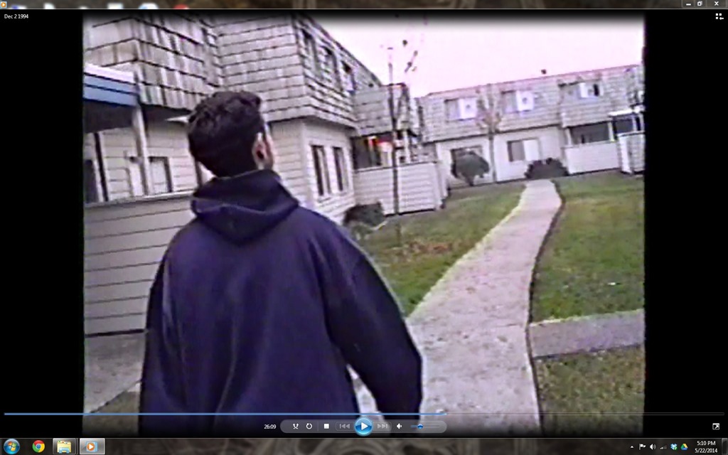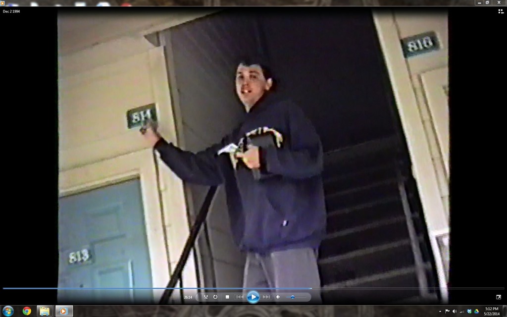 A screen capture from an old home video we made in the fall of 1994, believing we were as fascinating as anyone on The Real World…This is me walking through our beautifully-landscaped apartment courtyard