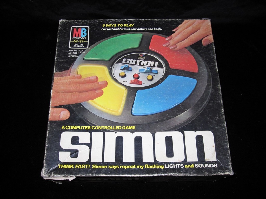simonThe present we got to open this Christmas Eve was another joint one between me and my sister, and was the infuriating electronic matching game known as Simon. I don’t recall the one-present-on-Christmas-Eve tradition surviving long past this.