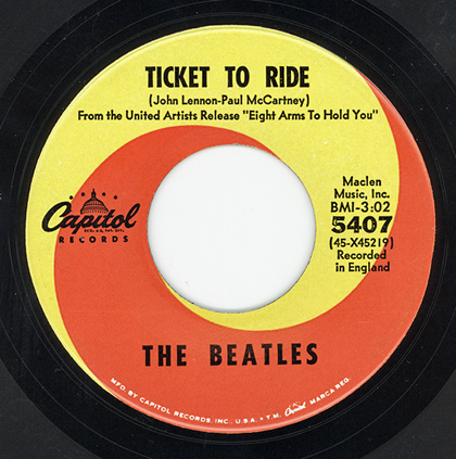 While the Beatles were busy being film actors, and Harrison was beginning his spiritual journey, “Ticket To Ride” was released as a single on April 9. Publicized as on the label as being “from the film Eight Arms To Hold You,” it was backed by “Yes It Is” as the B-side.