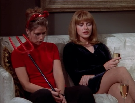 The show’s real treasure, though, was Stephen Root as the eccentric billionaire who owns the radio station, and in this episode refuses to invite the staff to his annual Halloween party. When asked why, he mentions that at his last Halloween party, the staff were, as he puts it, “too cool for school,” refusing to wear costumes and participate in the party games. He relents after they beg him to reconsider, leading to the show’s payoff — After frantically trying to think of a costume idea, in desperation Dave Foley asks to borrow Maura Tierney’s new cocktail dress, which leads to Foley revisiting his Kids In The Hall days and appearing in full drag…and looking quite fetching, actually. Tierney is in a mysterious foul mood for the remainder of the episode. When Foley finally asks why she is sulking, she explodes “Because you look better in my dress than I do!”