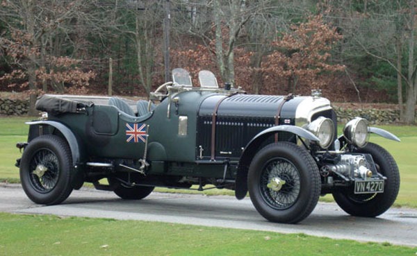 A 1930 4.5 liter Bentley “Blower” Convertible. The supercharger unit (“blower”) is just above the front license plate. Only 75 were made. Bond’s was painted flat grey and could easily do 120.