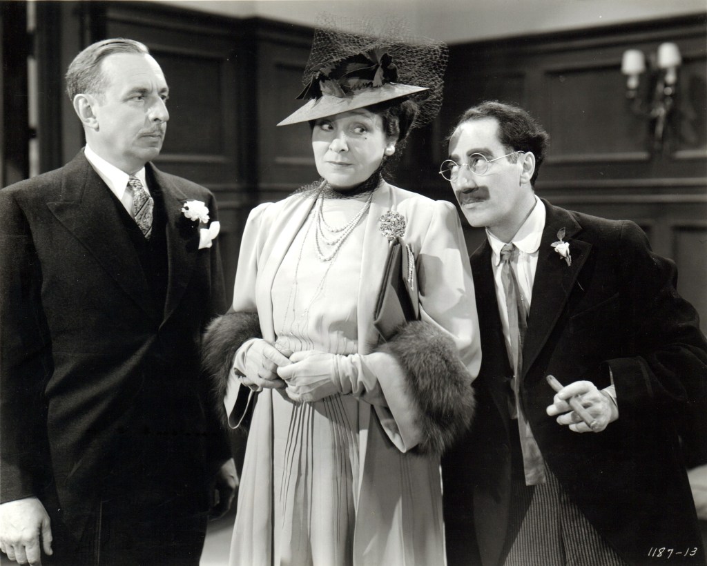“Our picture is becoming a garbage can for the studio,” wrote Groucho to Arthur Sheekman. “[Diana Lewis] is no Helen Hayes, [and] happens, by an odd coincidence, to be William Powell’s wife. The unit manager is Cummings’s cousin, and his assistant is a son of Bill Goetz, who happens to be Mayer’s son-in-law. So you see the only ones in the picture who are not related to anyone except to each other are the Marx Brothers.”