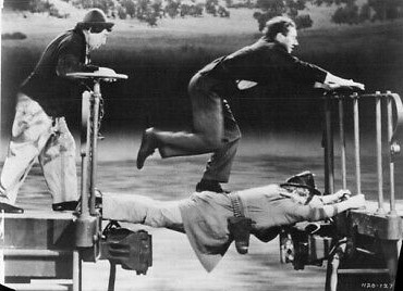 Jack Cummings set the budget and signed off on the various departments’ choices, and then proceeded to do not much else, except approve of the one good idea applied to Go West’s pre-production process. It was another repeat — taking the key comedy routines on tour and playing them to audiences to gauge how well they worked and where (and how long) the laughs were. Scenes from Go West played in Joliet, Toledo, Detroit, Chicago, and L.A. from April 28 through May 27, 1940. Shooting Go West occurred from July to October of 1940. (As we’ve seen, such lengthy shooting schedules were by no means uncommon at MGM, even for a 90-minute comedy.)