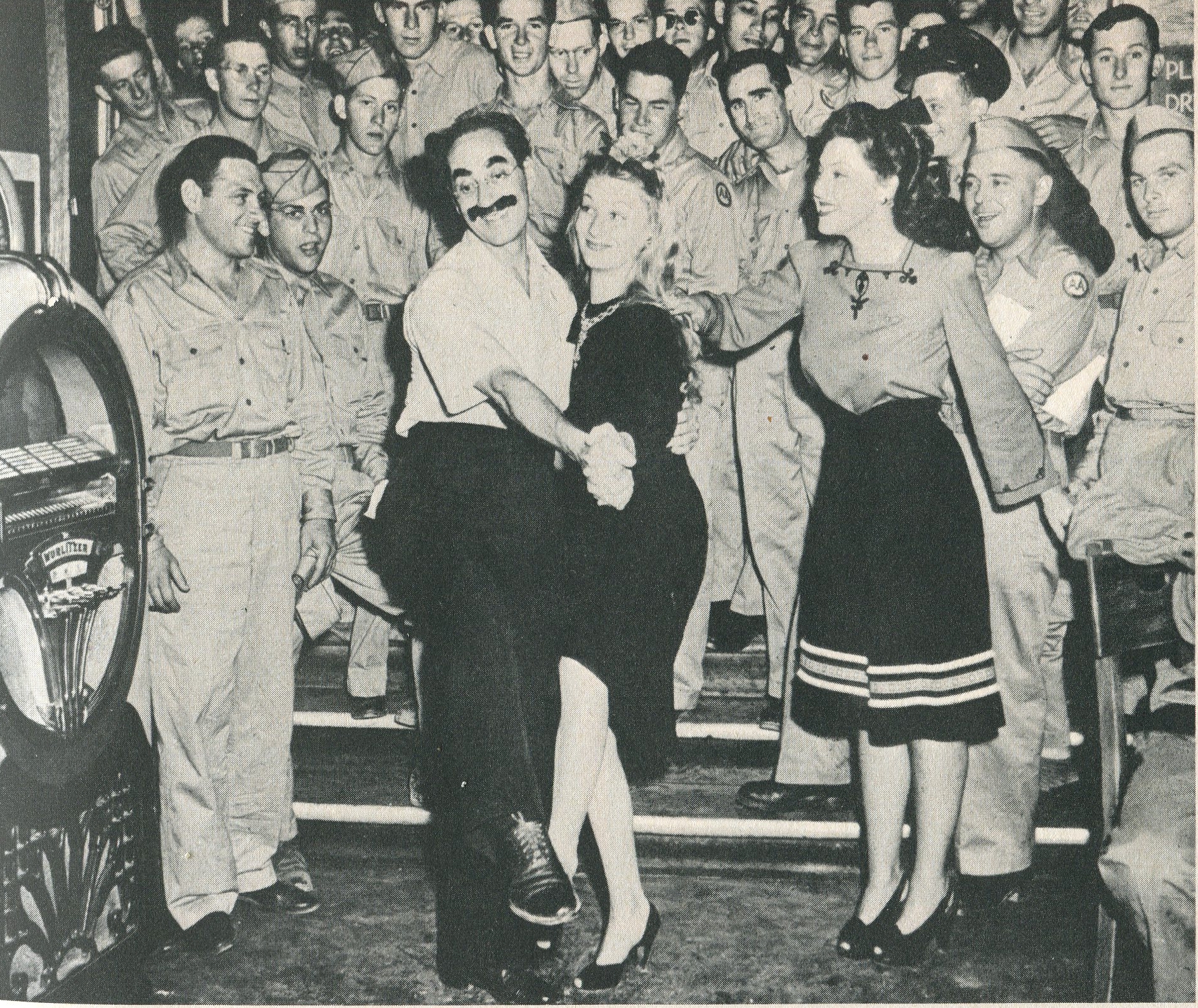 With the attack on Pearl Harbor on December 7, 1941, everything changed. The country was at war. One of Groucho’s personal wars came to a close when his long-estranged wife Ruth finally moved out of the family home just after Christmas. As she got into her car, Groucho stuck out his hand and said, “Well, it was nice knowing you, and if you’re ever in the neighborhood again, drop in.” Ruth was granted a divorce in July 1942.