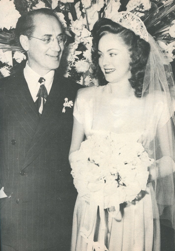 Loew hired playwright Joseph Fields to pen the first draft. Groucho found Fields’ work distinctly underwhelming, and invoked his status as co-producer to bring in more writers — radio veterans Howard Harris, Sidney Zalinka, and Roland Kibbee — to punch things up. Also on board was animator Frank Tashlin to help work out Harpo’s silent bits. Once the material was in decent shape, the tradition of taking key scenes on tour was revived. This time, they would take their show to army bases as well as traditional theaters. (Peace had been achieved in Europe and was only weeks away in Japan, and the troops were restless and starved for entertainment.) The tour was delayed due to Groucho’s wedding and honeymoon. He married Kay Gorcey on July 21, 1945. He was 54. She was just shy of 22.