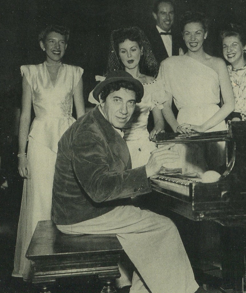 Chico was finally feeling his age. He walked with a distinct stoop, was often short of breath, and needed a nap in his dressing room between performances. He still delighted in pointing out a sign backstage at the Roxy Theater in New York that read “Any Girl Found On Chico Marx’s Floor Will Immediately Be Fired,” but that may have been an historical curio by 1947. In other areas, he showed no signs of slowing down. He traveled in the company of his new companion, Mary Di Vithas, known as “Mary Dee,” whom everyone agreed bore a striking resemblance to ex-wife Betty. In March of 1947, he suffered a heart attack in Las Vegas, and was sidelined for a while, but his raging gambling addiction needed to be fed, so he was soon back on the road*. He and his band performed in Germany and England later in 1947, and then toured Australia in the spring of 1948. He returned returned to Europe for a grueling five-month tour in 1949, including a four-week residency at the London Palladium as a double act with Harpo. (Harpo prepared for the gig by going to the U.K. early and doing solo shows in Leeds and Glasgow.)