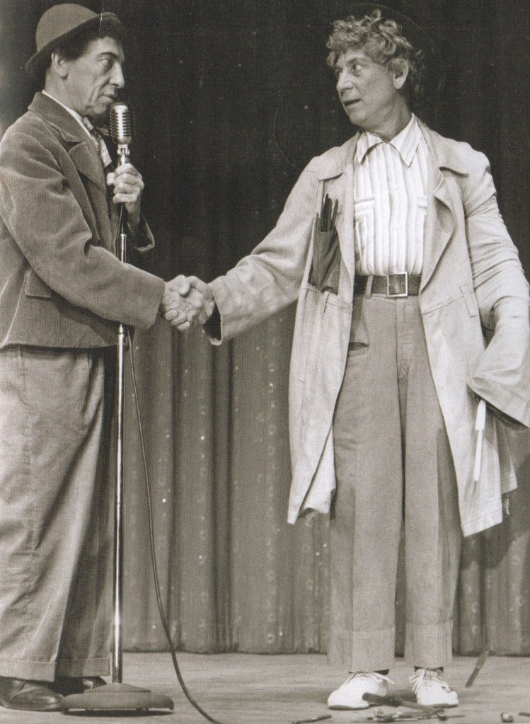 The March 30, 1952 episode of The Colgate Comedy Hour featured Harpo and Chico doing the act they had worked up for the London Palladium shows. Soon this two-man version of the Marx Brothers was appearing frequently in the clubs and hotel lounges of Las Vegas. Harpo also did another turn as the Property Man in The Yellow Jacket for the Pasadena Playhouse. So much for his retirement. (And “Harpo” appeared on I’ve Got A Secret in 1954 the secret being it was really Chico dressed in Harpo’s trademark costume.)