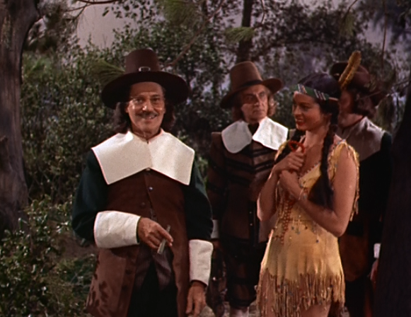 Allen had to rely on a bunch of stock footage, and calling in favors from his B-list celebrity acquaintances. Hedy Lamarr, Peter Lorre, John Carradine, Cesar Romero, and several others (including young Dennis Hopper as Napoleon) all heeded the call to play an important historical figure in a self-contained segment. Allen would have each of them for one day of shooting on cheap, tiny sets, and paid them $2000 each. He got Groucho to play Peter Minuit, who according to legend swindled the Native Americans out of Manhattan Island in 1626. Harpo played a silent Isaac Newton, who was evidently a harpist as well as a physicist, getting bonked on the head with apples. Chico was an Italian monk being convinced the world was round in the Christopher Columbus sequence. None of them appeared together. But at least they were in Technicolor.
