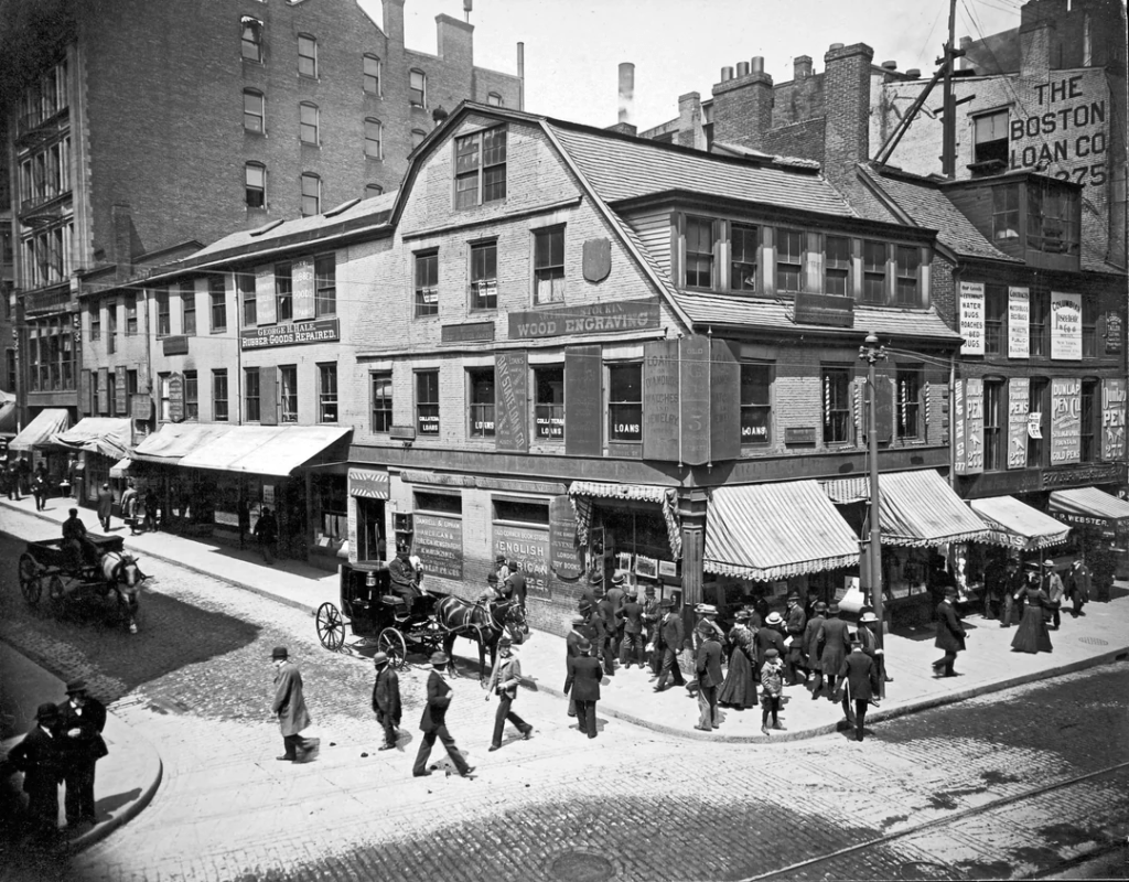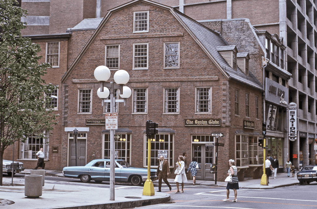 The actual location of the school bounced around a bit. For the first decade of its existence, there was no dedicated schoolhouse. Classes were taught in the home of the headmaster, which at the time was located just beyond the southeastern edge of the Old Burying Ground. In 1645, a schoolhouse was built next to the headmaster’s home on the north side of what would eventually be called School Street. An updated building replaced or modified the original structure in 1704.