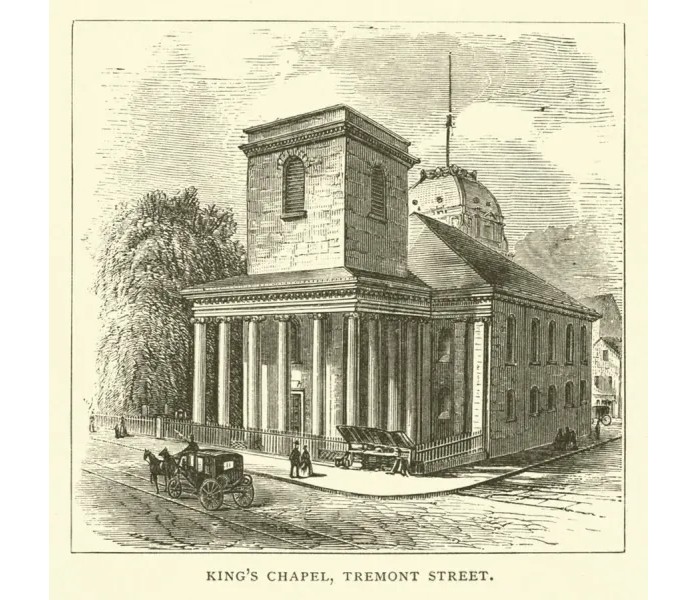 The parcel of land he took? A portion of the Old Burying Ground. The human remains were (hopefully) cleared from the space, construction began, and the first “King’s Chapel” was ready for Anglican services by 1689.