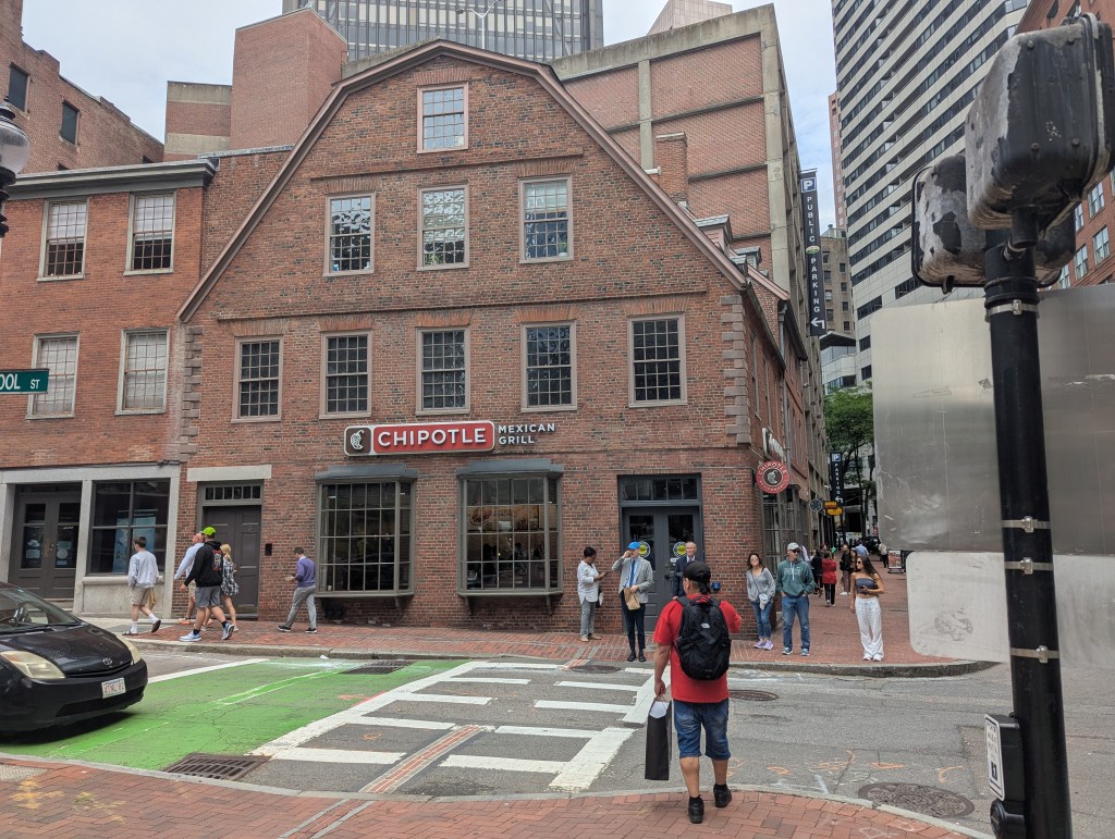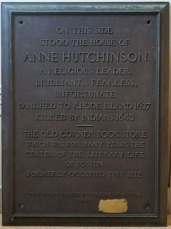 It is currently a Chipotle burrito restaurant. Maybe not its most prestigious use, but way better than a parking garage. The feisty Anne Hutchinson might have enjoyed debating “covenant of works” versus “covenant of grace” over an adobo chicken bowl on the site of her former residence.