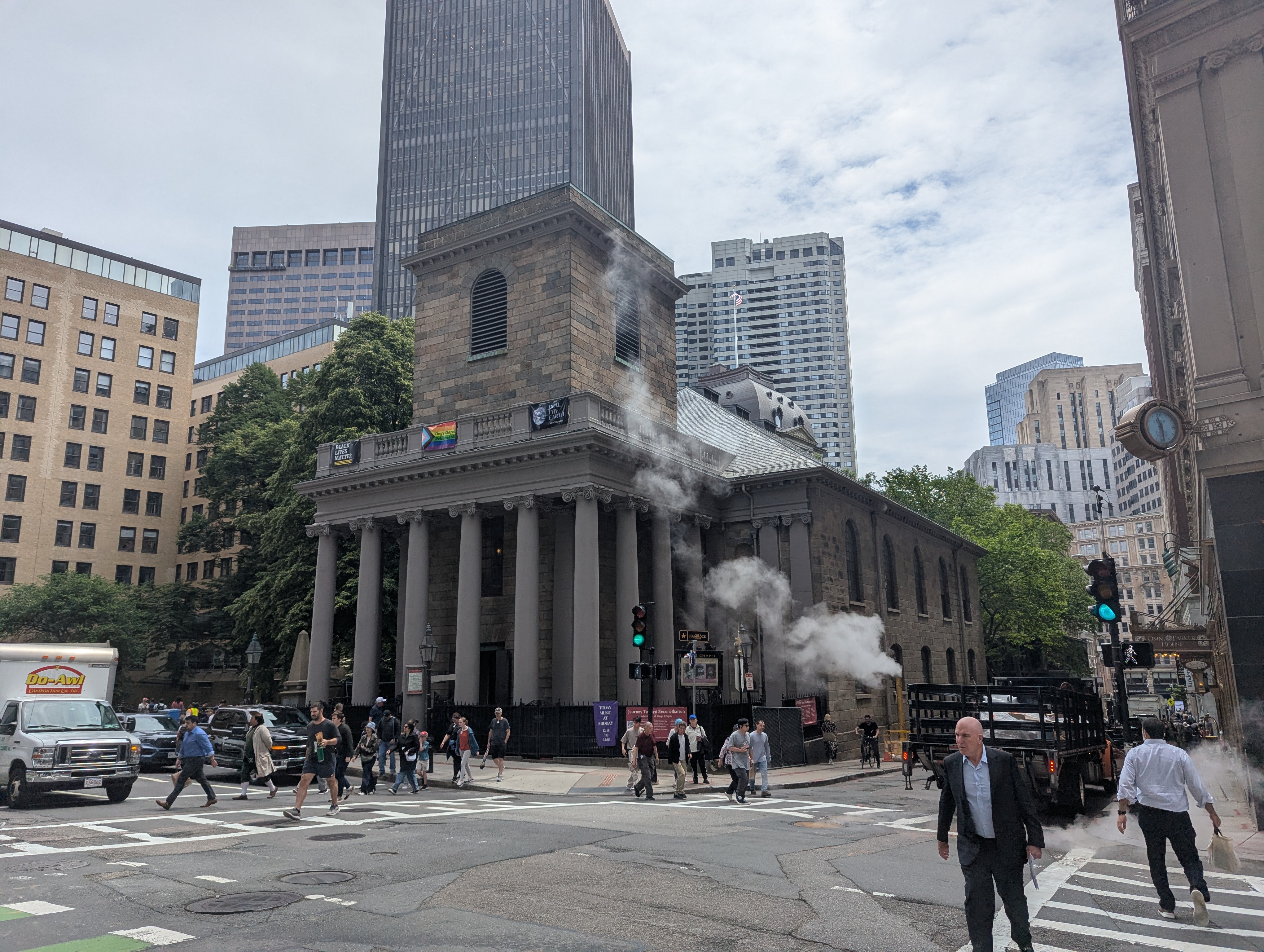 King’s Chapel’s clergy and most of its parishioners were Loyalists, so when the American Revolution broke out, many of them moved out of the area, and attendance dropped. In 1785, King’s Chapel became the first Unitarian church in the United States, four decades before the Unitarians had a formal organization. The bell in the tower was crafted by Paul Revere in 1816, and was his last major project.
