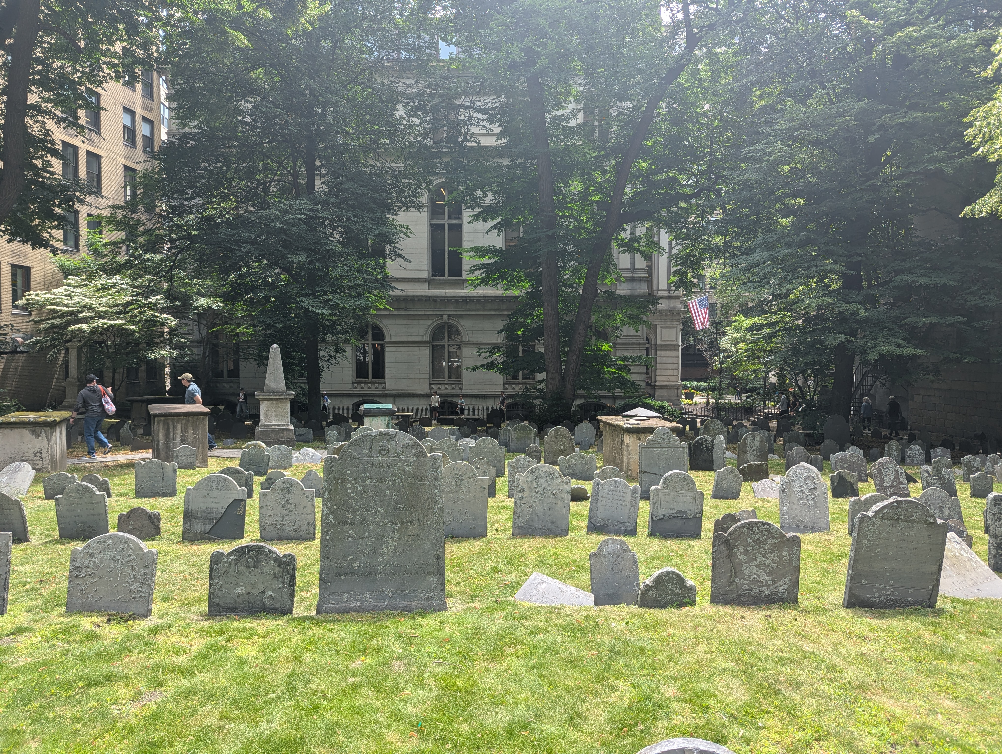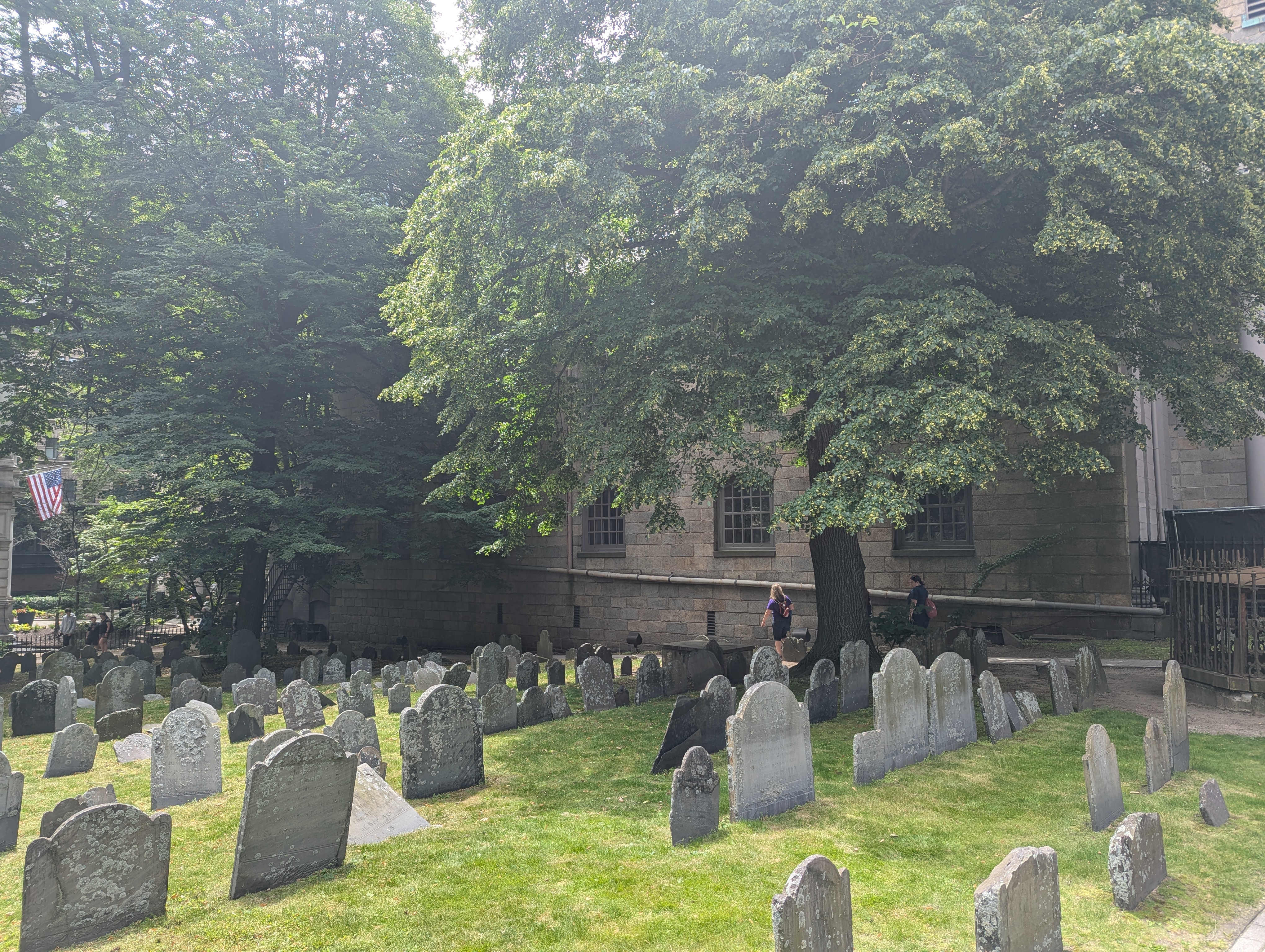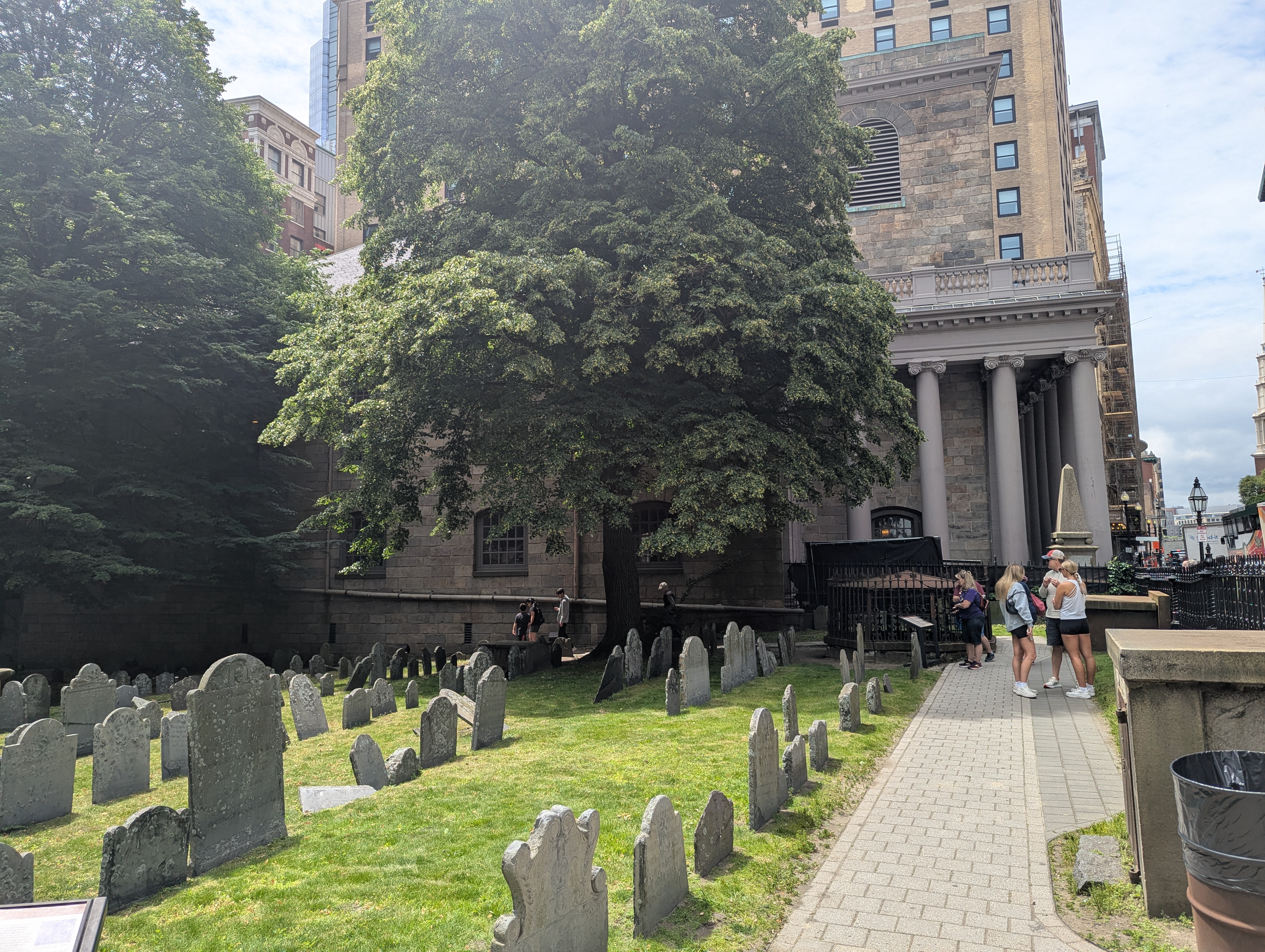 Just a few yards up Tremont Street from the Granary Burying Ground was #5, King’s Chapel & Burying Ground. The King’s Chapel Burying Ground is the oldest graveyard in Boston, established the same year as the city itself, 1630. Despite its name, it has no affiliation with the church it is adjacent to, and in fact predates the chapel by several decades. It was at first just called the “Burying Ground,” and as soon as a second graveyard was established, the “Old Burying Ground.”