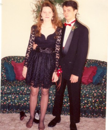 “No. The guy drives to prom. That’s tradition.” [NOTE: I may have been the one to insist that driving to the prom was the male prerogative, but this is how I remember it, and if anyone doesn’t like it, they can get their own long-winded blog. E. definitely vetoed the Blazer up front, though.]